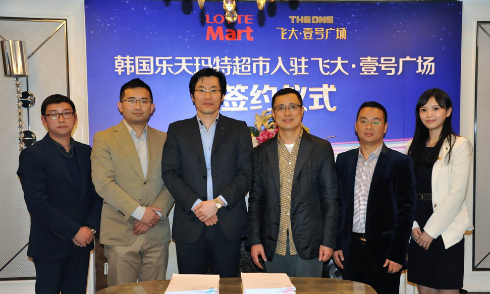 据了解2014年底,韩国乐天玛特超市入驻飞大·壹号广场也正式签约成功。